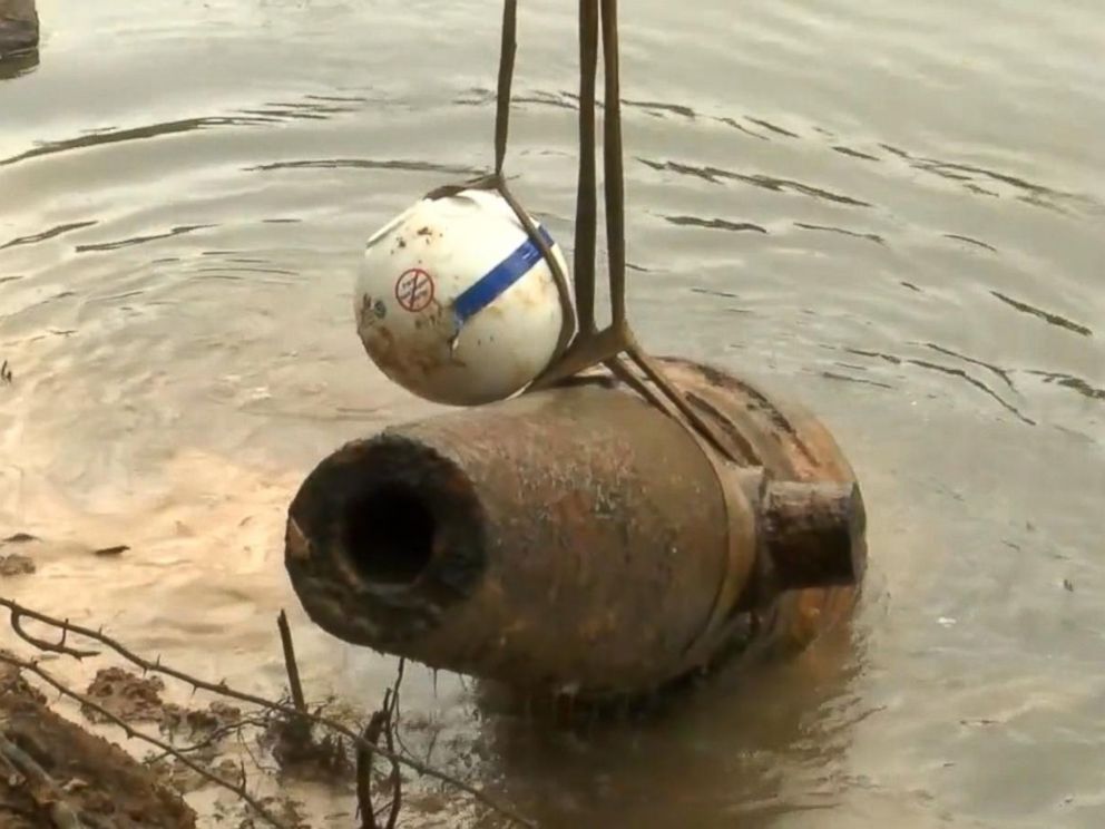 Spectators cheered as the cannons are raised from a riverbank by a backhoe, according to a report from local ABC affiliate WDPE.