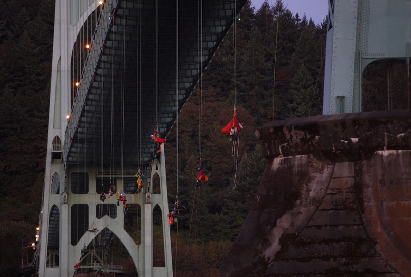 “Not today, Shell!” an anchor support yelled from a Portland bridge as 13 climbers hung below for the 29th consecutive hour. Cheers and chants were heard from land and water around 7:30 a.m. Pacific Time Thursday, as a Royal Dutch Shell ship slowly turned around in the water and retreated from the bridge.
