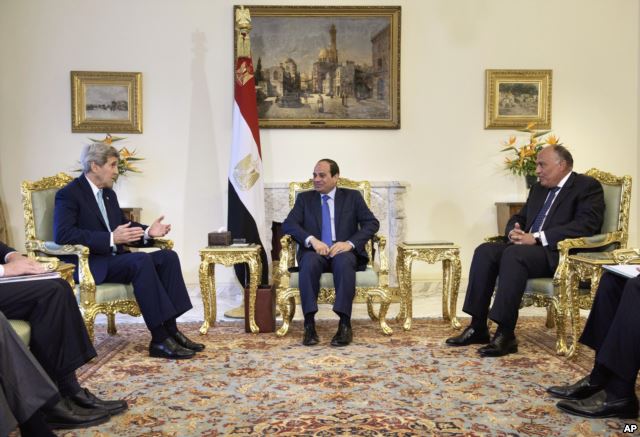 Kerry is on a five-nation tour of the Middle East and South Asia.  In Egypt, he also met with President Abdel Fattah el-Sissi, in a diplomatic show of support for Egypt’s ongoing faceoff against Islamist extremists in the Sinai peninsula.