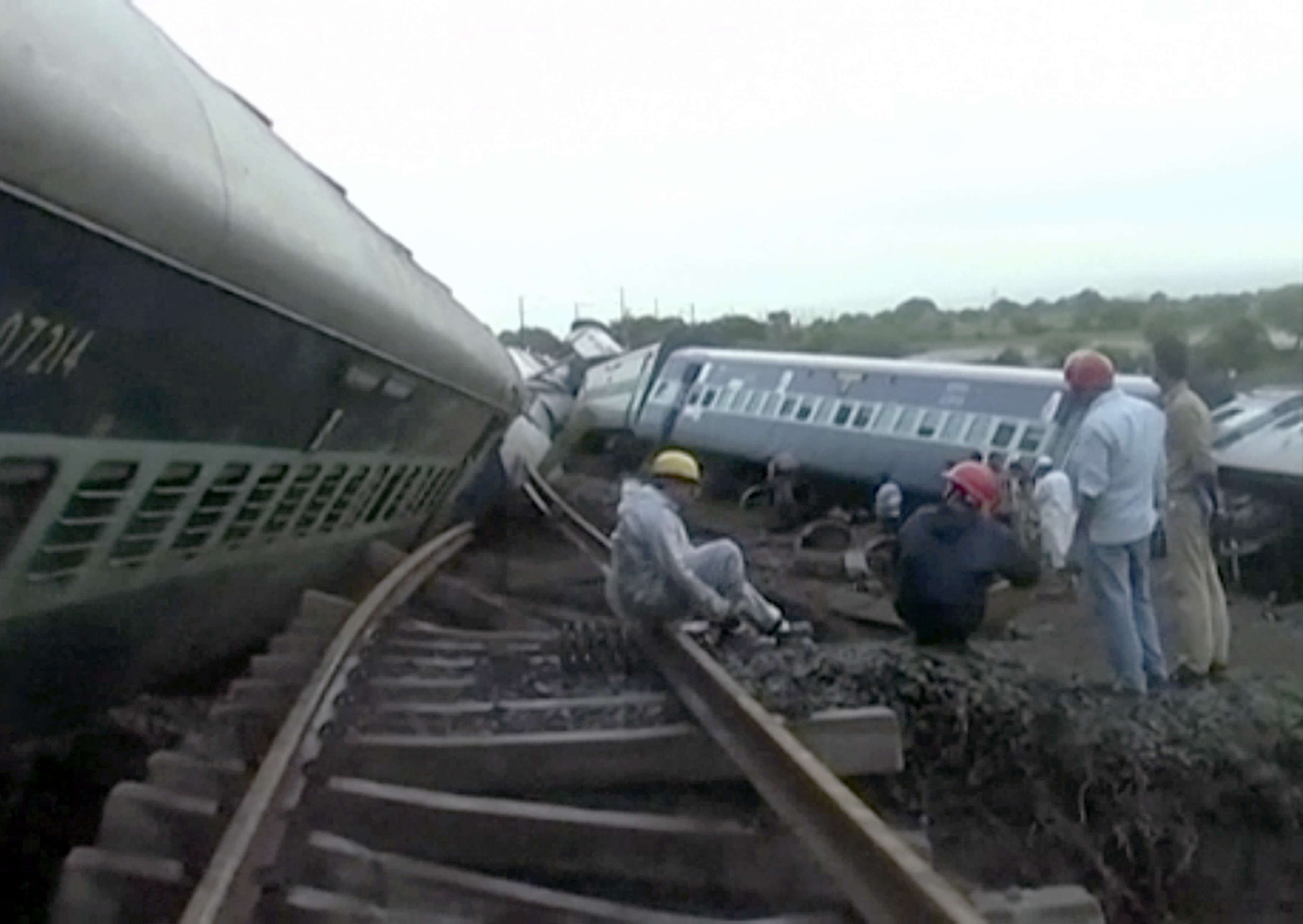 The trains were crossing a small bridge near the rain-swollen Machak River, about 950 kilometers (590 miles) south of New Delhi. Another train had passed the same culvert 10 minutes before the first derailment without any problem, but then a flash flood caused part of the track to sink into the rain-soaked ground, said A.K. Mittal, a senior railway officer.