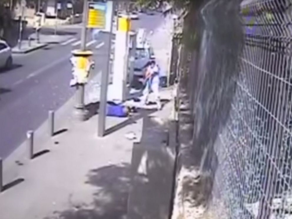 The attacker is not done, according to the footage. He gets out of the car and begins to hack at the lifeless victims with meat cleaver before he is shot by a nearby security guard.